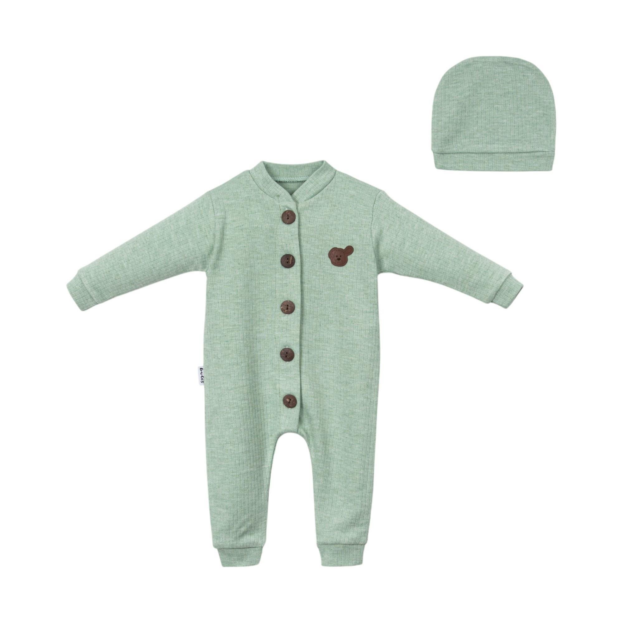Düğmeli Fitilli Şapkalı Tulum Seti 3-6-9 Ay (NT0483)