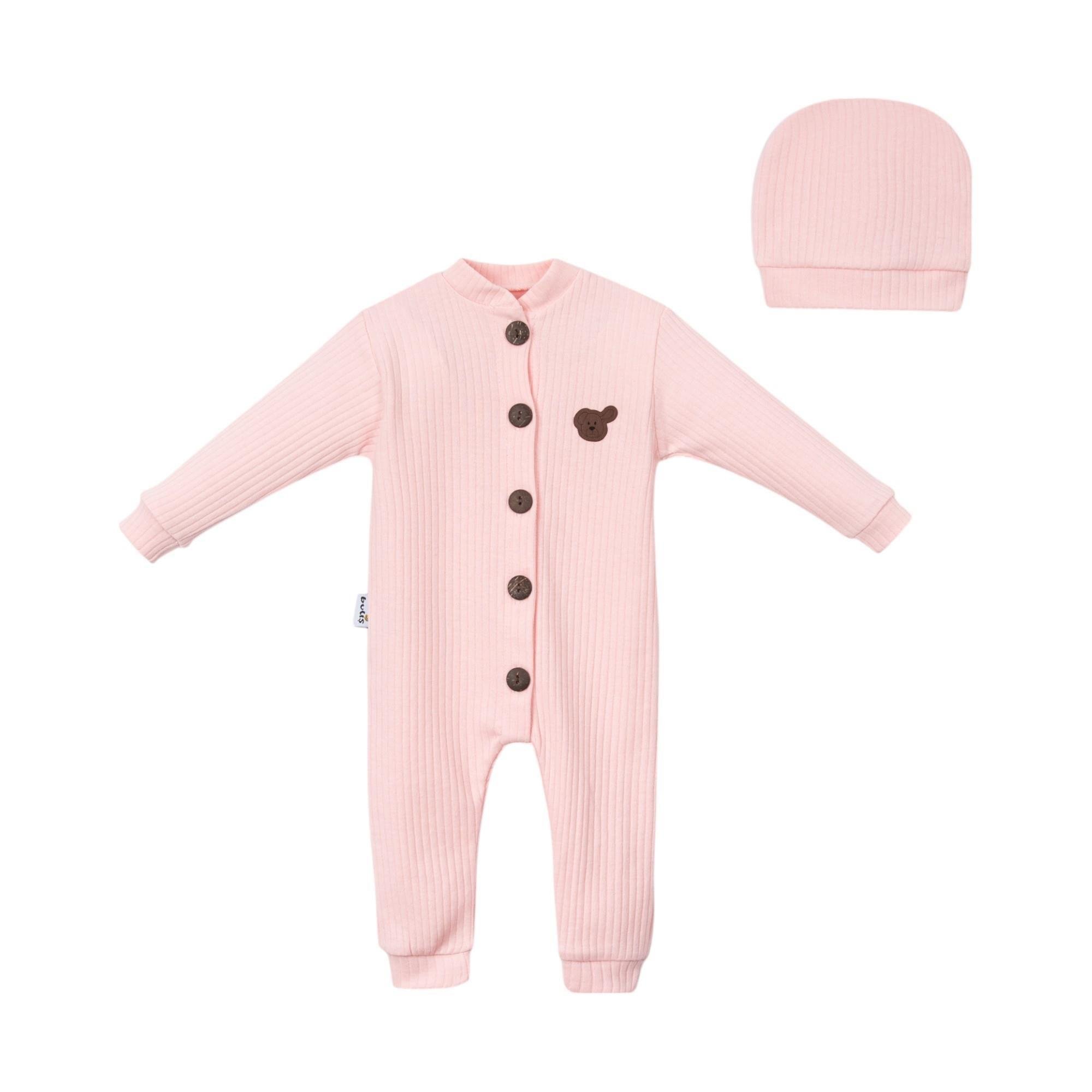 Düğmeli Fitilli Şapkalı Tulum Seti 3-6-9 Ay (NT0484)