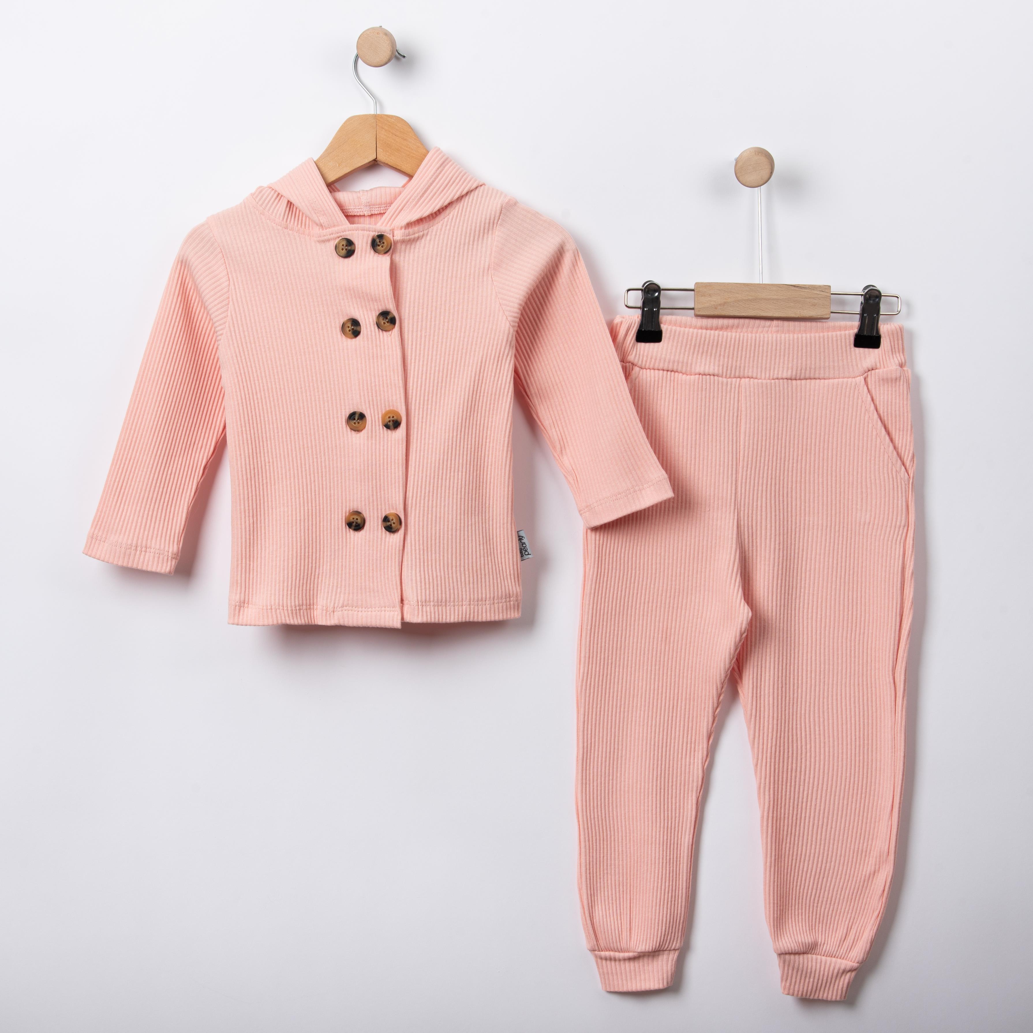 Düğmeli Kapüşonlu Kız Çocuk İkili Takım 1-2-3-4 Yaş (NT0480)